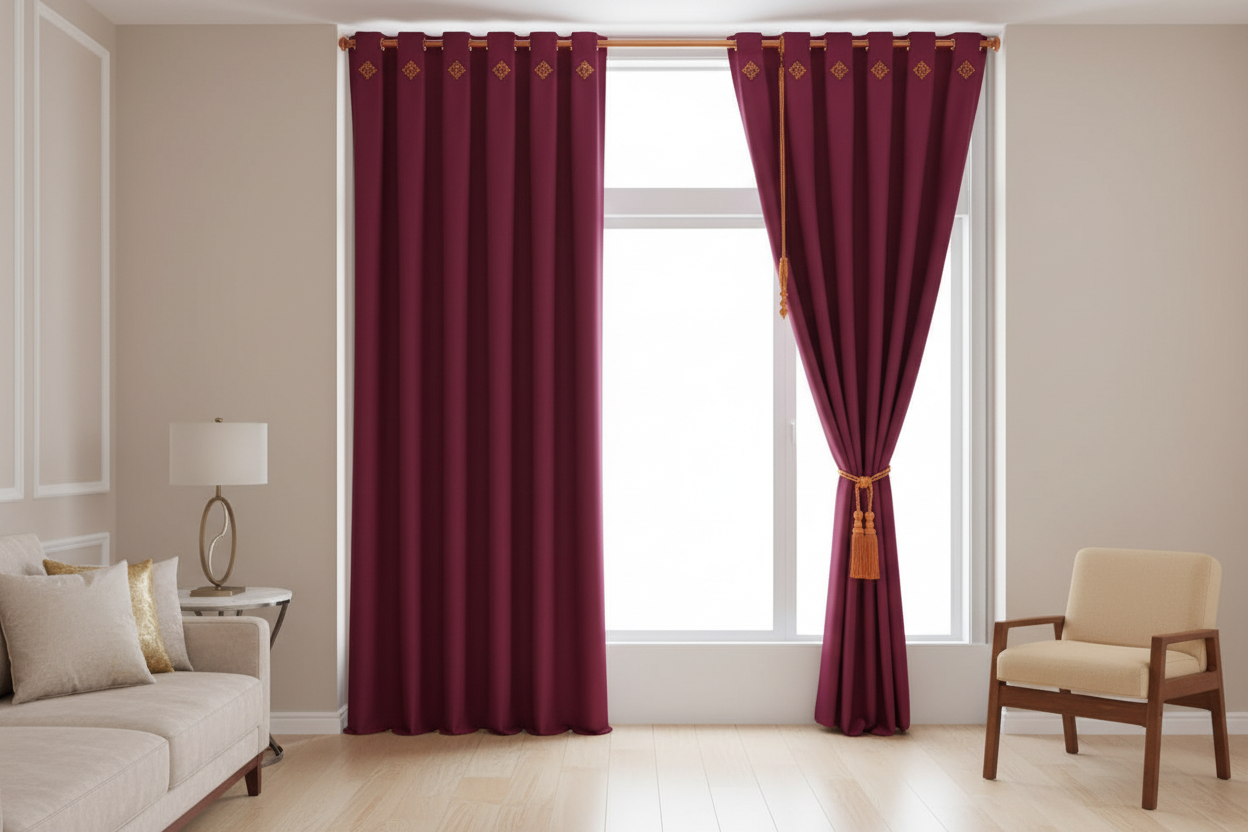 Cortina jaquard argolla 2 paneles vinotinto