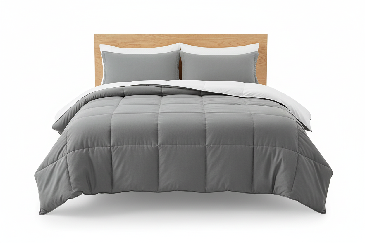 Edredon acolchado unicolor gris- blanco