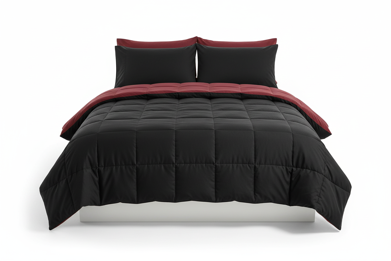 Edredon acolchado unicolor vinotinto- negro
