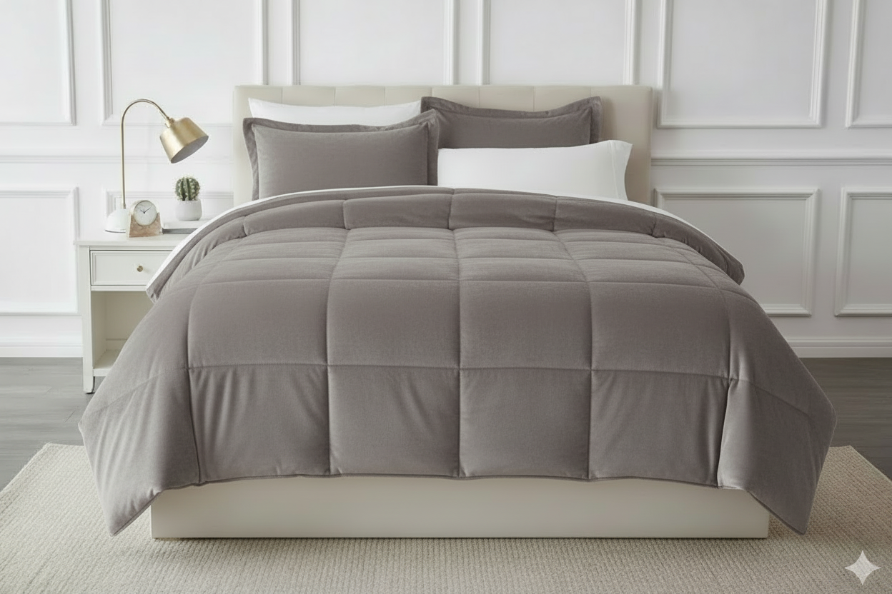 Edredon termico piel de durazno gris oscuro