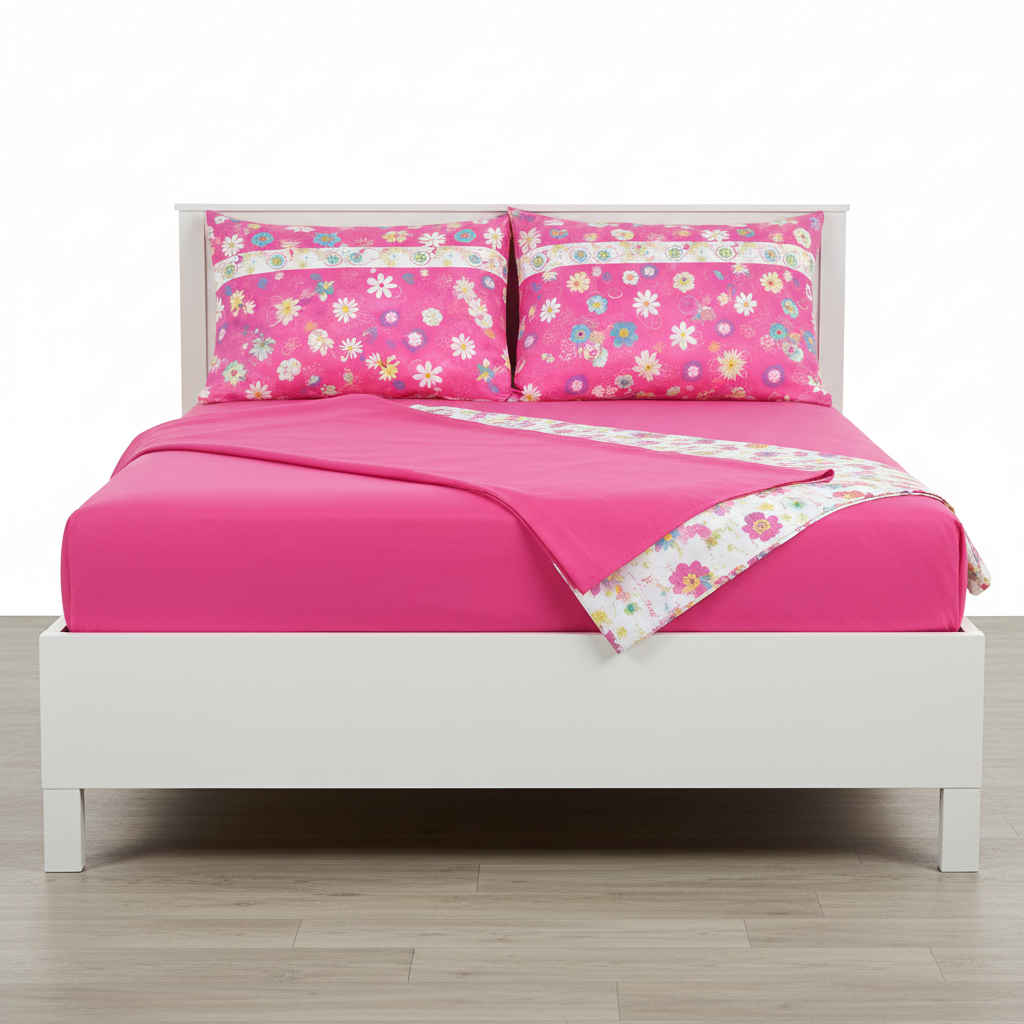Juego de sabana estampada polialgodon flores rosada